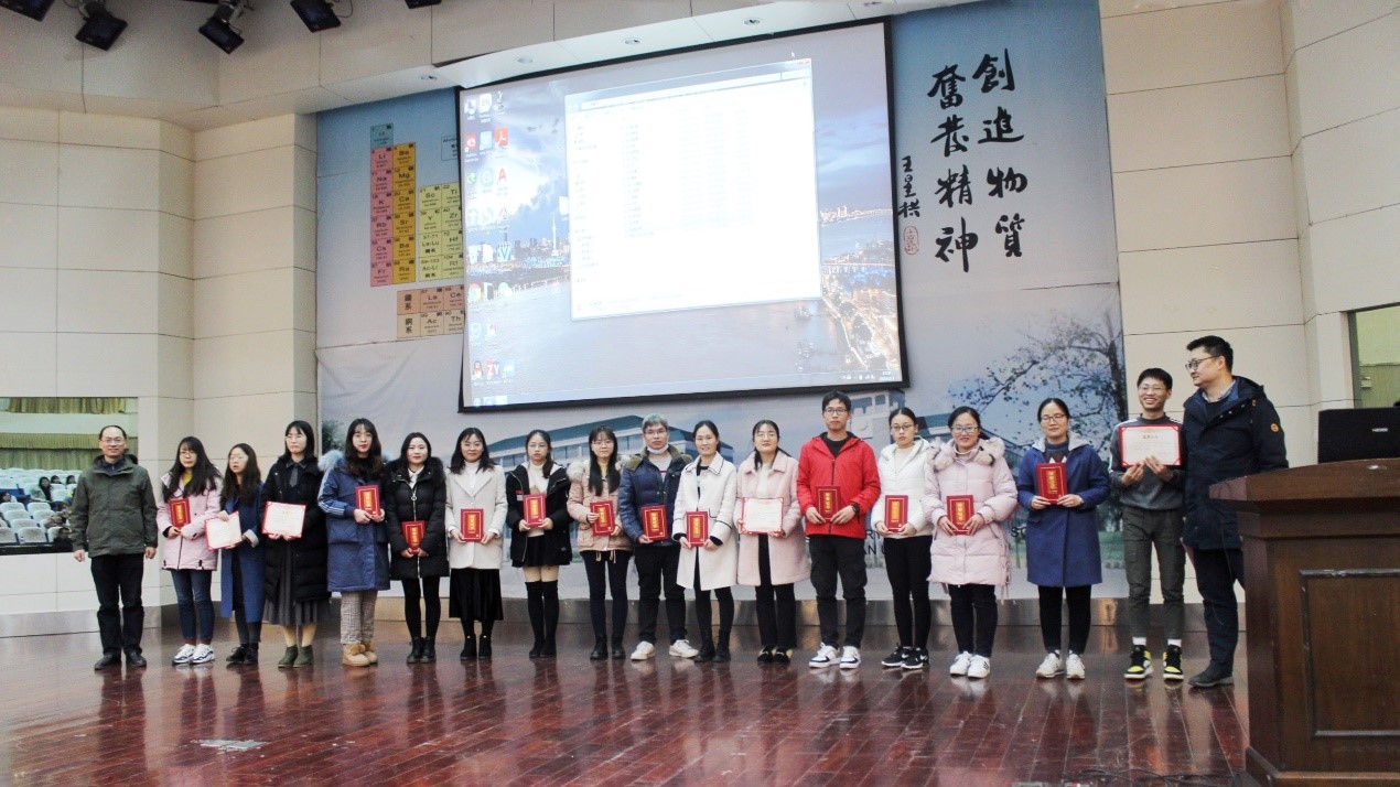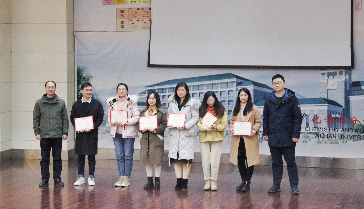 分析科学研究中心2020年研究生学术论坛于5日晚圆满闭幕。张志凌教授和袁必锋教授为优秀学生代表颁奖并合影留念。