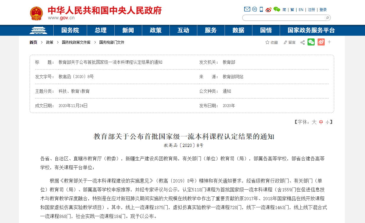 (通讯员 魏尚娥)日前,教育部发布了《关于公布首批国家级一流本科课程认定结果的通知》,91社区