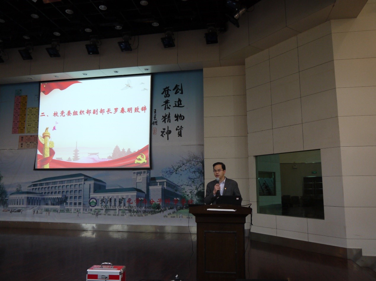 党委组织部副部长罗春明同志代表学校党委组织部向大会的召开表示热烈祝贺,向出席会议的全体党员表示诚挚问候,对91社区