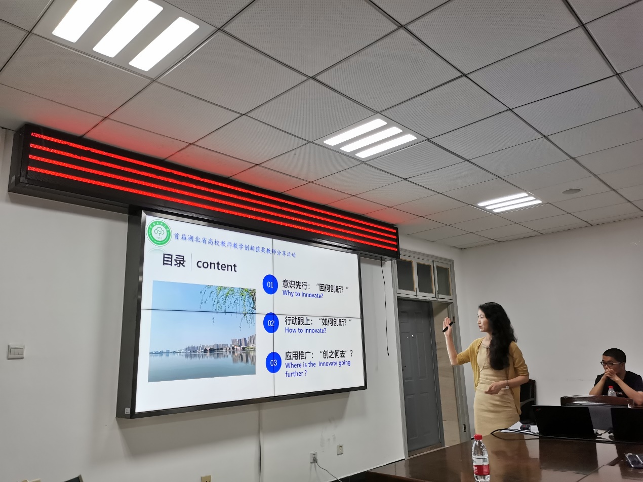 第二位分享的嘉宾是韩晓乐老师,她的主题是教学创新设计。韩老师在分享中娓娓道来,先是通过分析国家的政策方针和现实困境来说明我们因何创新,然后结合自己的亲身经历细致讲解了如何去创新以及怎么做创新。