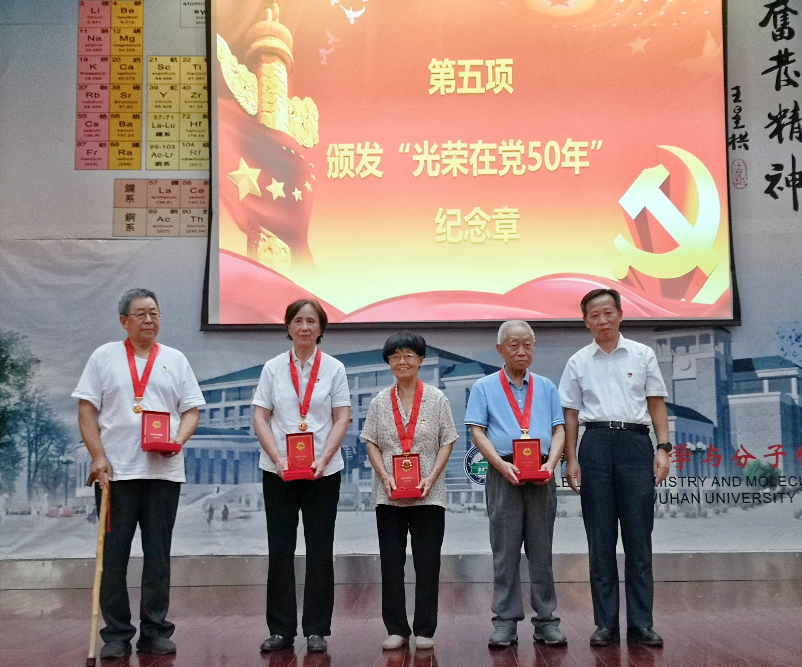 召开庆祝中国共产党成立100周年表彰大会,举行“光荣在党 50年”纪念章颁发仪式,党员代表陈琼、李早英、宋昭华、左正忠获颁纪念章。