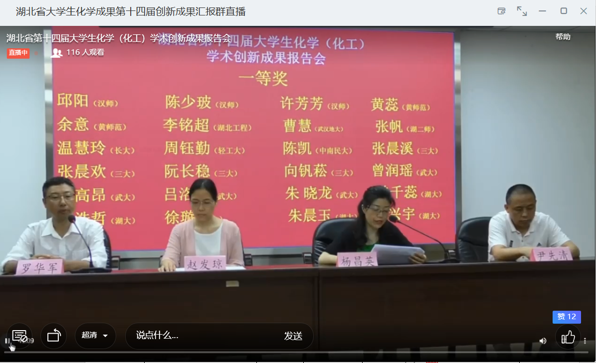 湖北省大学生化学成果第十四届创新成果汇报群颁奖直播