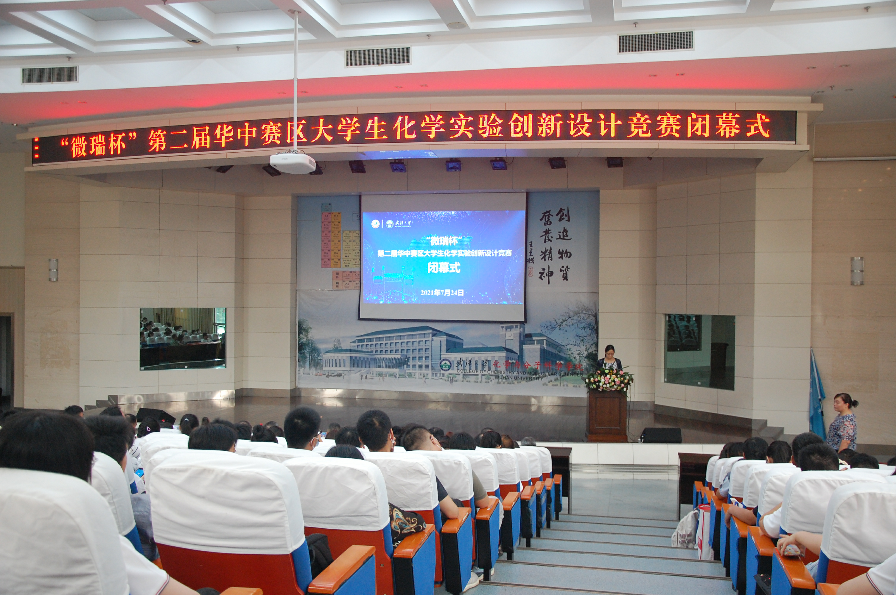 领导为获奖队伍颁奖。最后,竞赛组委会宣布第三届华中赛区大学生化学实验创新设计竞赛承办单位为华中科技大学。至此,第二届华中赛区大学生化学实验创新设计竞赛圆满落下帷幕。