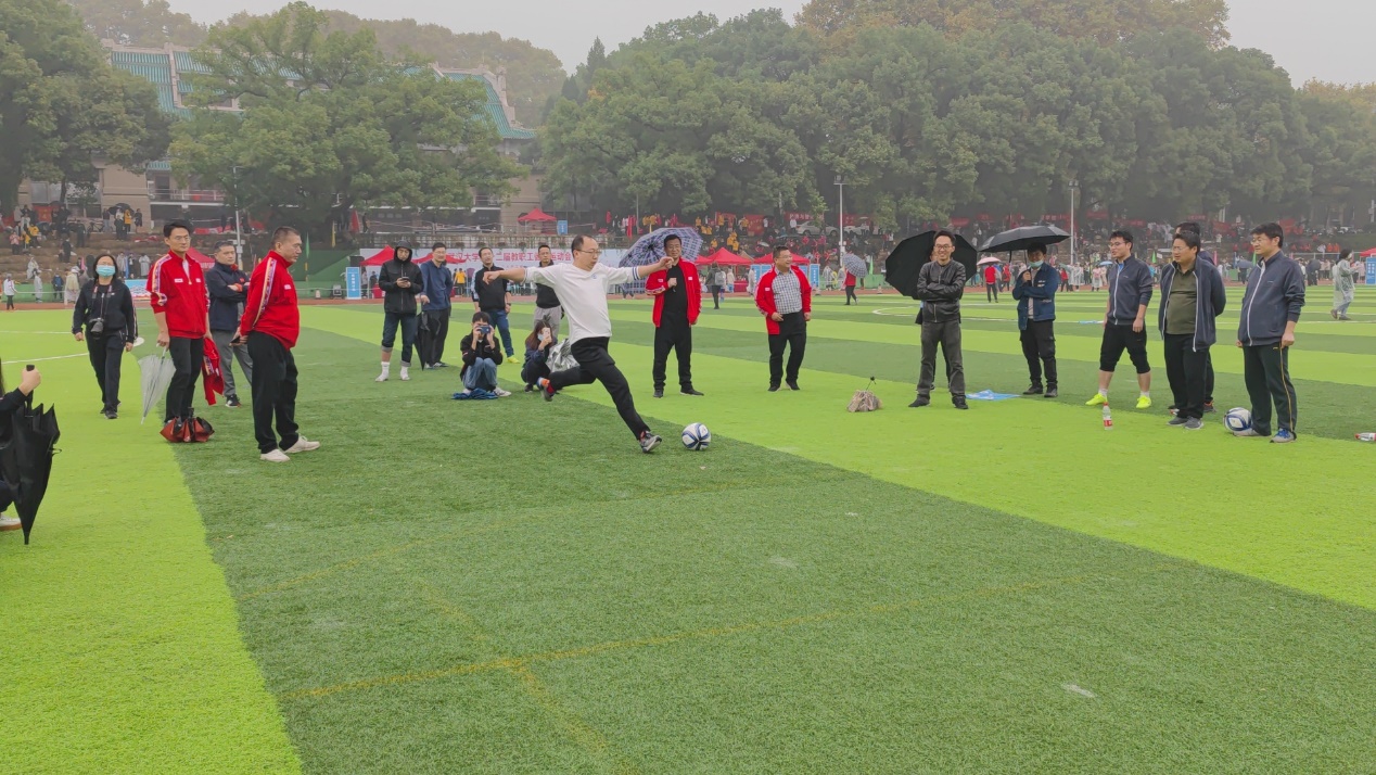 下午天空飘起了绵绵细雨,但却一点也没有影响老师们的运动热情,雨中射门,雨中冲刺,老师们奋勇拼搏的精神在这场雨中体现得淋漓尽致。运动会的最后一个项目——迎面穿梭接力,掀起了整个运动会的高潮,一棒接一棒,湿滑的跑道也阻挡不住老师们迈出的坚定的步伐,跑道两旁站满了加油鼓劲的观众,营造出欢乐和谐的运动氛围。