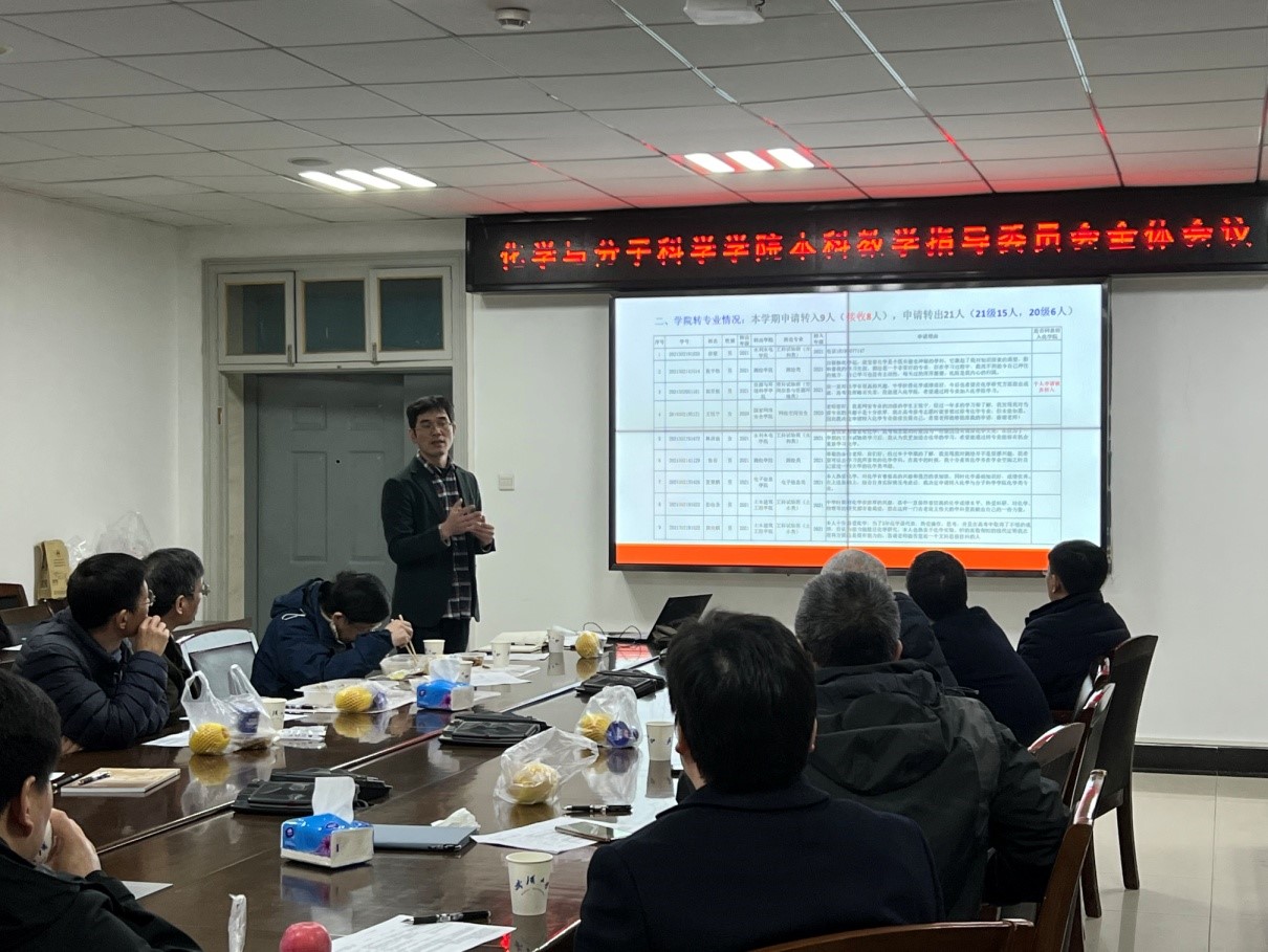 本科教学指导委员会全体会议在化西210召开,全体教学指导委员会成员参与了本次会议,会议由副院长周金平主持。