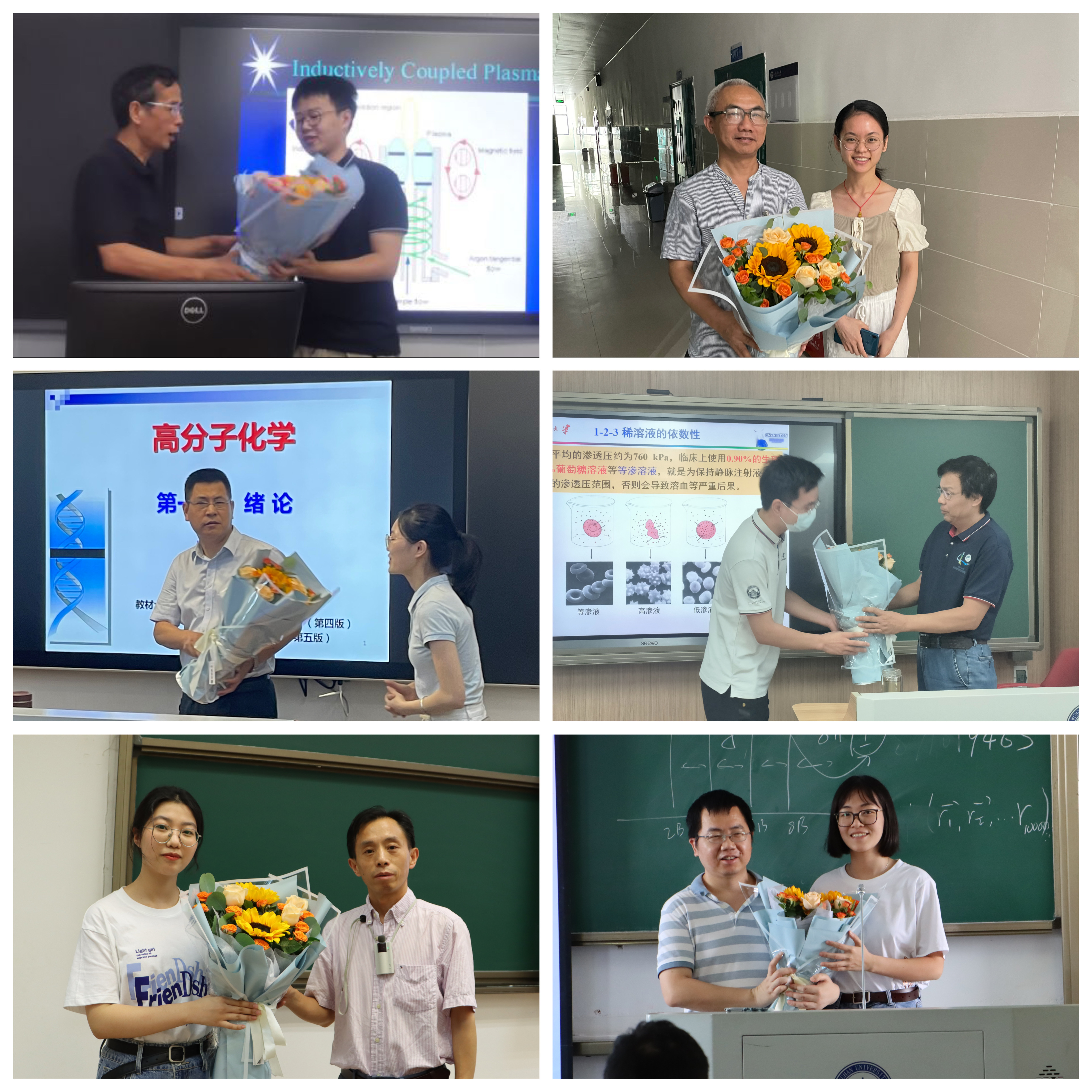 学生代表为正在课堂授课的教师代表张先正教授、胡斌教授、彭天右教授、唐宏武教授、姜中兴副教授和王志勇副教授献上鲜花和教师节的祝福,感谢老师们的无私奉献和谆谆教诲。