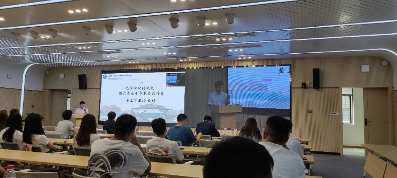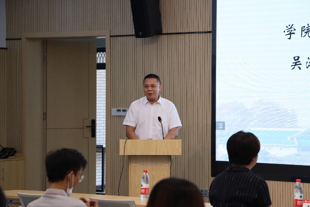 副院长黄卫华教授致辞,黄院长首先对2022级研究生新生表示热烈欢迎,不仅要提高和导师的沟通能力还有提高团队协作能力,做科研要有百折不挠的精神,为培养全方位高水平发展的高素质人才做出努力。