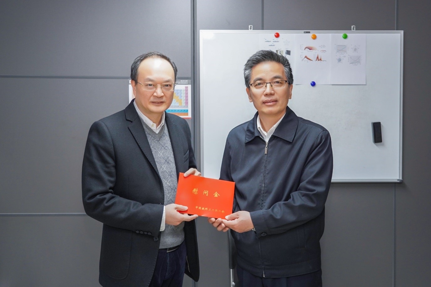 3月25日下午,中国教科文卫体工会主席章国贤一行来91社区 看望慰问了湖北省“十佳师德标兵”获得者院长庄林教授。庄林汇报了91社区 发展、实验室建设和科研工作开展情况,章国贤给予了肯定和赞扬,鼓励再接再厉,取得更大成绩。