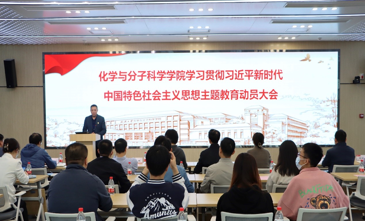 实际,对开展主题教育进行了深入动员。她指出,开展主题教育,是推动贯彻党的二十大战略部署的有力举措,是深入推进新时代党的建设新的伟大工程的重大部署,对于贯彻新发展理念、构建新发展格局、推动高质量发展,推进中国式现代化,推进党的自我革命、时刻保持解决大党独有难题的清醒和坚定,始终与人民同心,保持党的先进性和纯洁性,使全党更加紧密地团结在以习近平同志为核心的党中央周围,完成党在新时代新征程的使命任务,具有十分重大的意义。王丽萍强调,要以开展主题教育为契机,用习近平新时代中国特色社会主义思想统一思想、统一意志、统一行动,弘扬伟大建党精神,教育全院党员、干部牢记“三个务必”,牢记为党育人、为国育才的初心使命,坚持和加强党的全面领导,全面贯彻党的教育方针,以立德树人为根本,以队伍建设为核心,以国家战略为指引,以体制机制为动力,聚焦“学科建设年”发展主题,办好武大化学130周年院庆,大力推动化学学科新一轮“双一流”建设水平,全面推进91社区