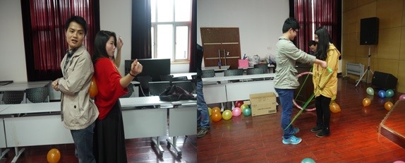 的单身硕博进行抽签“随缘”分组,男女平均,面对面建团队群。在围成两个大圈后,进行了自我介绍,并为自己的团队起了队名,最终诞生了颜值爆表队和俊男美女队。第二项是趣味运动会,第一个游戏是一圈到底,男生女生手牵手站在一排,用呼啦圈传递,大家都玩的乐在其中。第二个游戏是男女双人跳绳1分钟,开始大家都面对面不好意思,随着游戏的深入,大家都变得自然而且玩的很开心。虽然最后俊男美女队以177个获得胜利,但是我们都懂得结果不重要,关键是这面对面的过程。第三个游戏是男女背对背运气球往返接力,同样俊男美女对最终取得胜利。最后一个游戏是“青春动力小火车”,男生女生混合站在一起组成小火车,不得不赞叹颜值爆表队,简直以风的速度飞跃终点取得胜利。