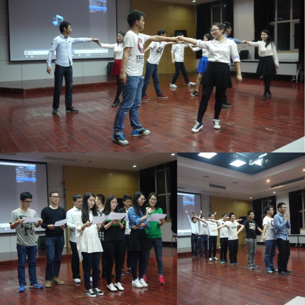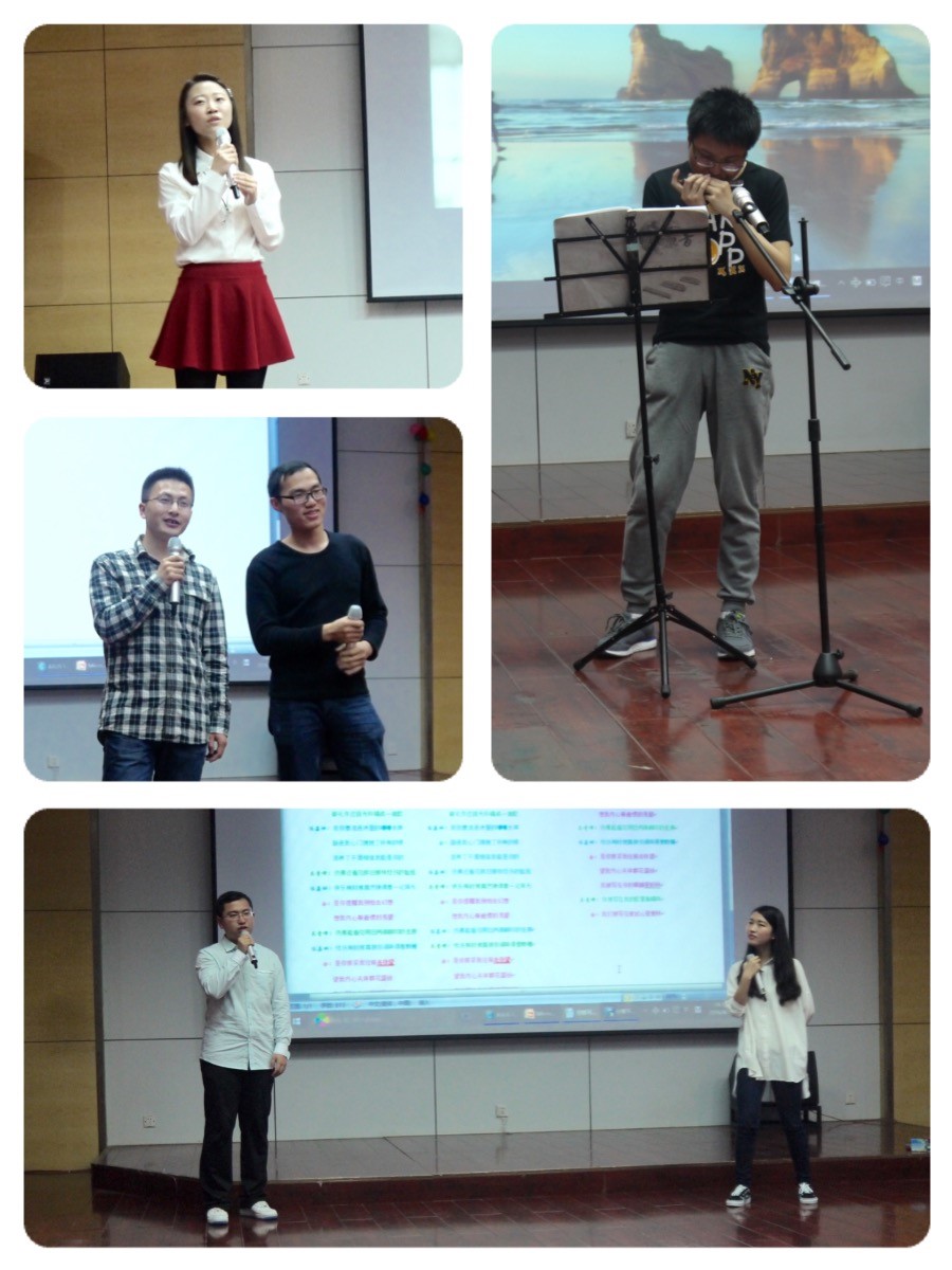 本次活动共分为两个环节,分别是团队风采展和文艺演出。在第一个环节中,“俊男靓女队”将上次活动的照片和微信群中的聊天记录等做成了PPT,一一展示、解说;而“颜值爆表队”则是把照片全部做成了电子相册,配上欢快的音乐,根本看不够。