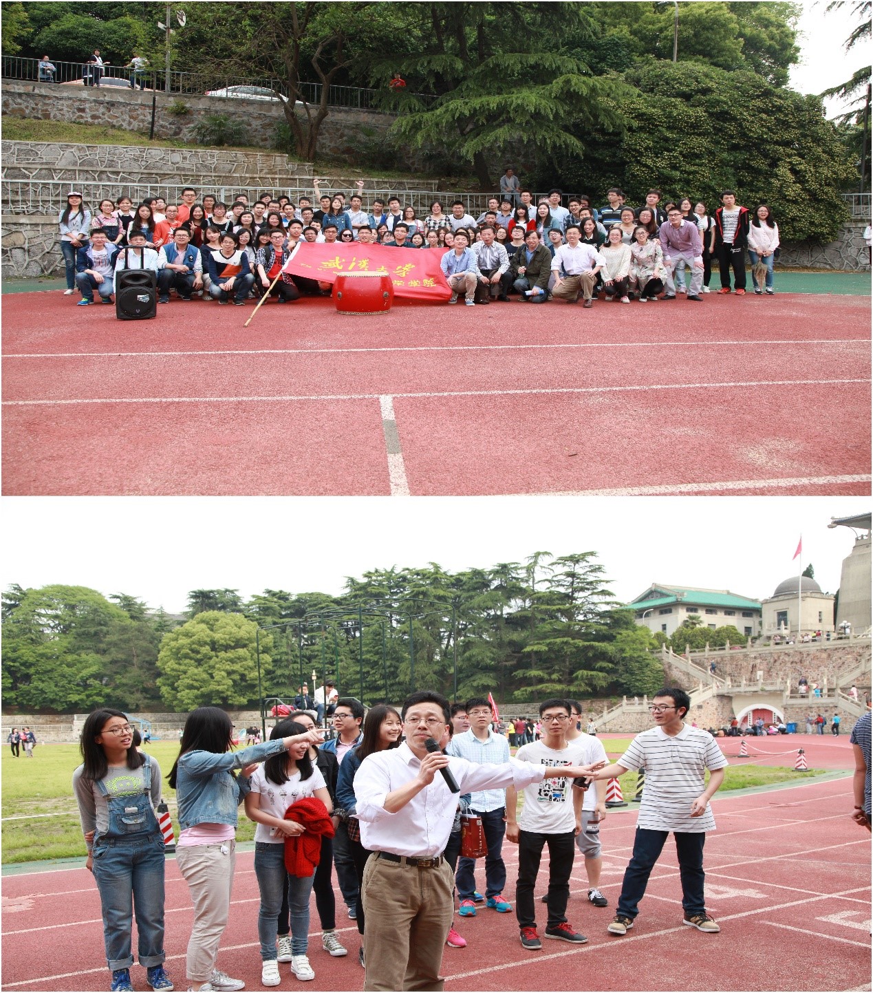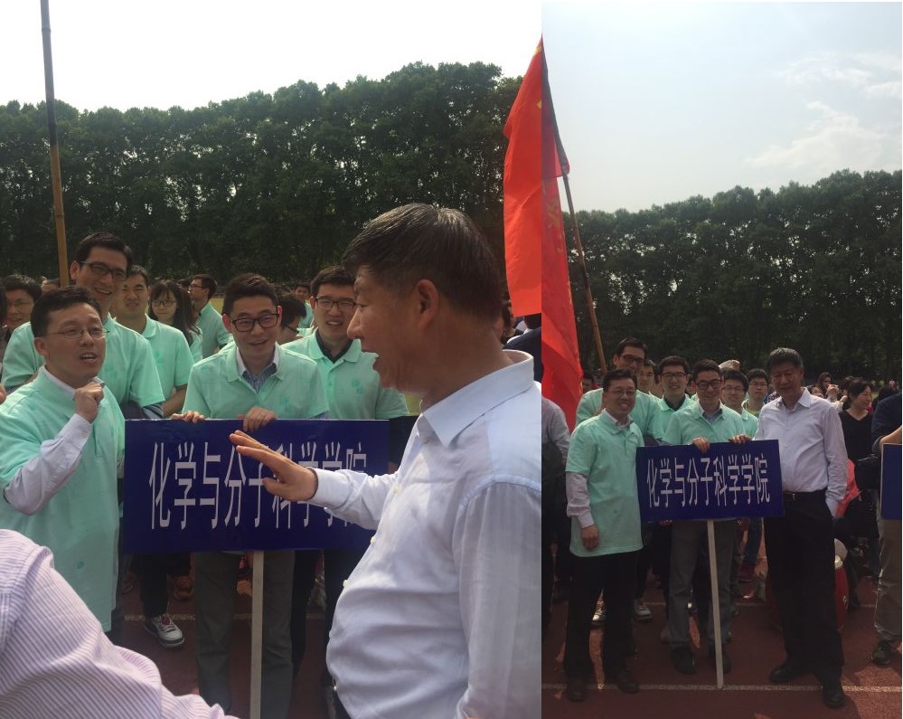 啦啦队队伍庞大,声音洪亮,充满激情,气势磅礴。“化院必胜”,“化院,加油”,声震奥场,引来兄弟单位关注,原来只是赛前啦啦队训练。