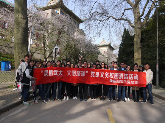 研究生党总支副书记姬建建是党员周末义务劳动的组织者,他号召大家向环卫工人学习,美化环境,净化心灵,使我们热爱的武大景美人更美!(通讯员:崔华华 秦后国)