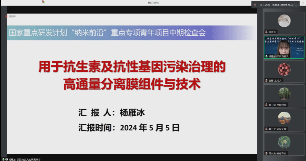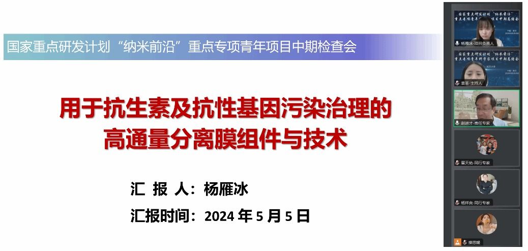 牵头的国家重点研发计划“纳米前沿”重点专项青年科学家项目“用于抗生素及抗性基因污染治理的高通量分离膜组件与技术”中期总结会议以线上的形式顺利召开。项目专家组由中国科91社区