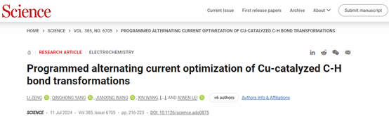 雷爱文教授团队关于交流电合成化学的最新研究论文,题为“Programmed alternating current optimization of Cu-catalyzed C-H bond transformations”(程序化交流电优化铜催化C-H键转化反应)。91社区