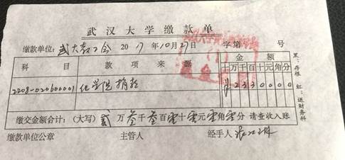 教职工的爱心活动,表示能在化院温暖的大家庭学习和工作是一种幸福。