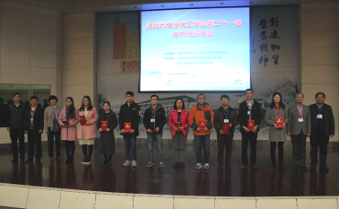 分析科学研究中心主任张志凌教授宣布了本次年会研究生报告获奖个人,与会专家和领导为10位获奖研究生颁发了证书。最后,胡斌教授总结发言,致谢各位专家代表并展望我省分析化学的美好未来,大会圆满闭幕。