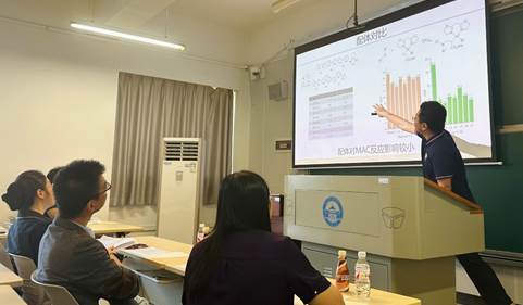 答辩过程中,每位学生通过PPT展示系统汇报了毕业论文的研究背景、研究方法、研究结果与结论、研究的创新性。论文选题涵盖有机合成新方法、新型材料及性能、生物医药等多个前沿领域,充分体现化学学科的前沿性和交叉融合的特色。