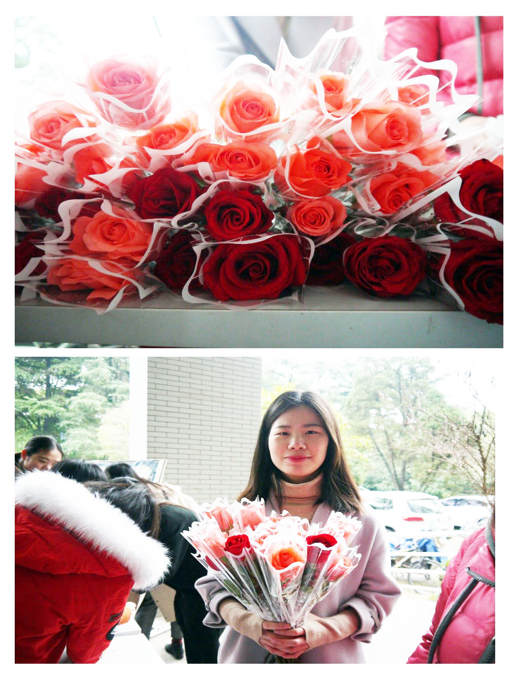 活动还未开始,女生部成员就已早早来到化院东门设置摆点,为大家摆好心愿墙,准备节日礼物和便签。十一点活动正式开始,同学们积极参与,耐心排队,现场次序井然有序。女生们满带笑容地写下自己的心愿,随后领取工作人员为大家分发的玫瑰和酸奶,男同学则兴奋地写下自己的表白便签。得知自己的便签将由工作人员亲自派送至表白对象的手中,不少男生露出羞涩的笑容。活动现场到处弥漫着青春快乐的气息,化东门口一时充满了温馨与欢乐。