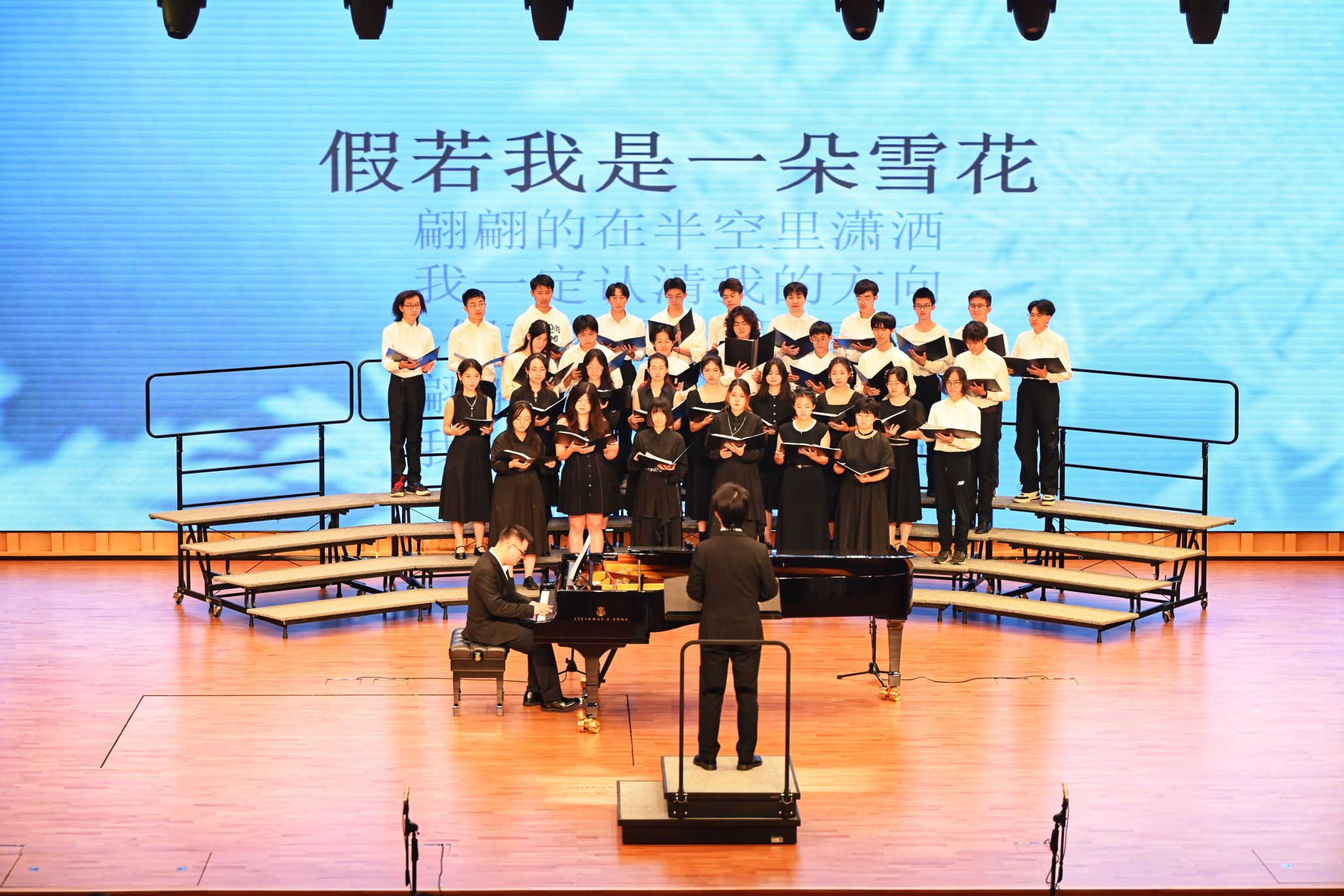 化院合唱团的一曲《雪花的快乐》拉开了音乐会的上半场的序幕。《Love is an open door &彩虹》《青玉案·元夕》《是否》《葬花吟》《绽放&贝加尔湖畔》《这世界那么多人&Glow&再回首》《Enter with song &阿妹》构成了上半场的精彩单元,合唱团成员们精彩的演绎、美妙的和声,让观众仿佛置身美的海洋。