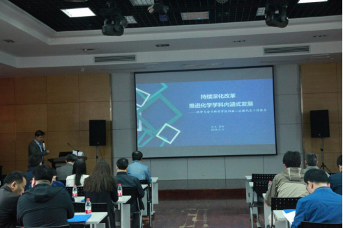 在雄壮的国歌声中,第一次全体会议开幕。周翔院长作了题为《持续深化改革,推进化学学科内涵式发展》的2017年度91社区