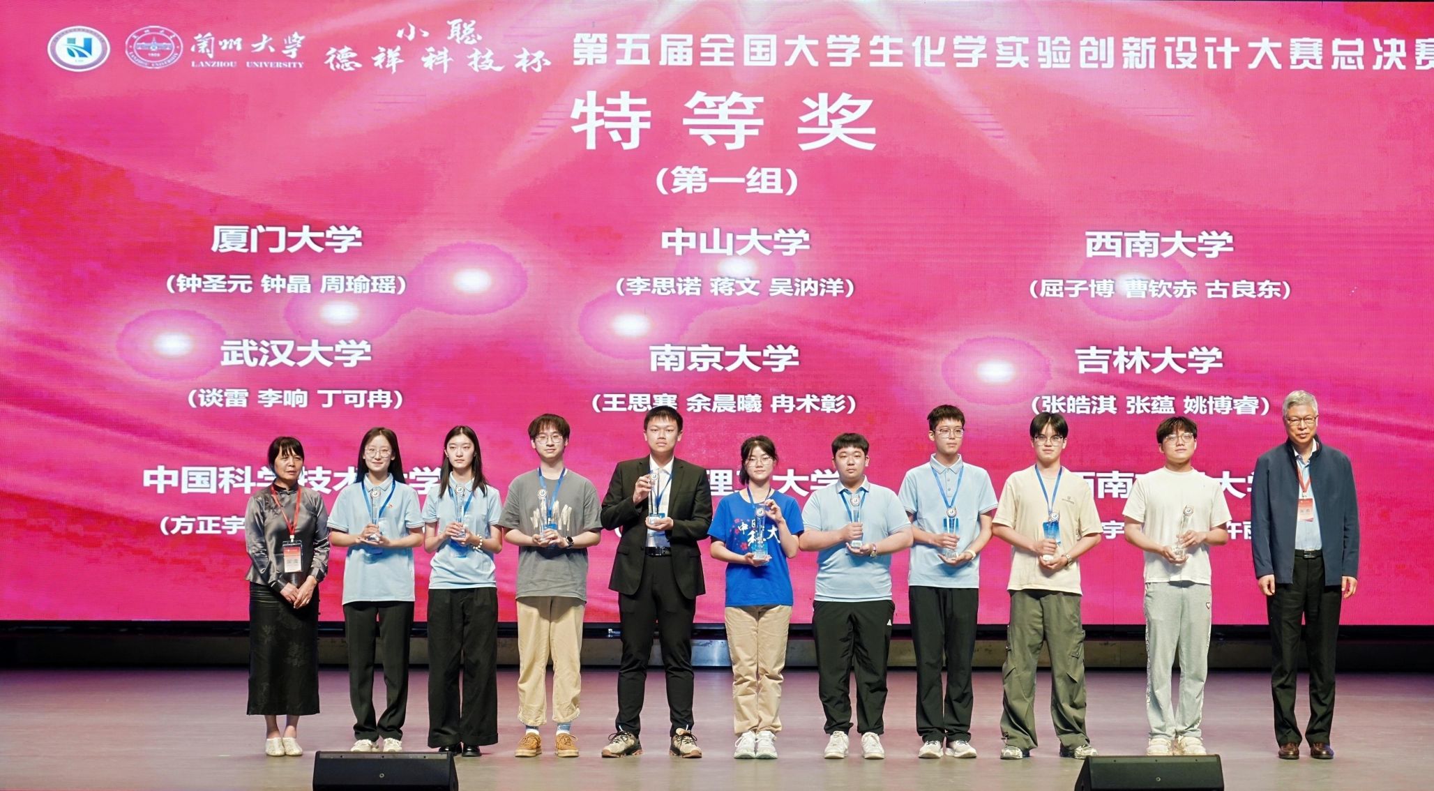 全国大学生化学实验创新设计大赛是由中国化学会和教育部高等学校国家级实验教学示范中心联席会主办的全国性学科竞赛,是在全国普通高校大学生竞赛排行榜上的化学类A类竞赛。该赛事旨在为大学生搭建一个展示与交流实践创新能力的平台,推动高等学校实践教学深化改革,进一步夯实学生在化学实验方面的基础知识、基本理论与基本技能,增强大学生分析问题与解决问题的能力,着力培养其创新意识、创新精神与创新能力,为高素质创新人才的成长提供有力支撑。本届竞赛期间,来自四百多所高校的一千多支队伍经过前期东北、西北、华北、华东、华中、西南、华南七大分赛区的激烈角逐,最终91支队伍晋级总决赛,晋级比例低于7%。总决赛设置特等奖、一等奖和二等奖,特等奖比例为20%左右。