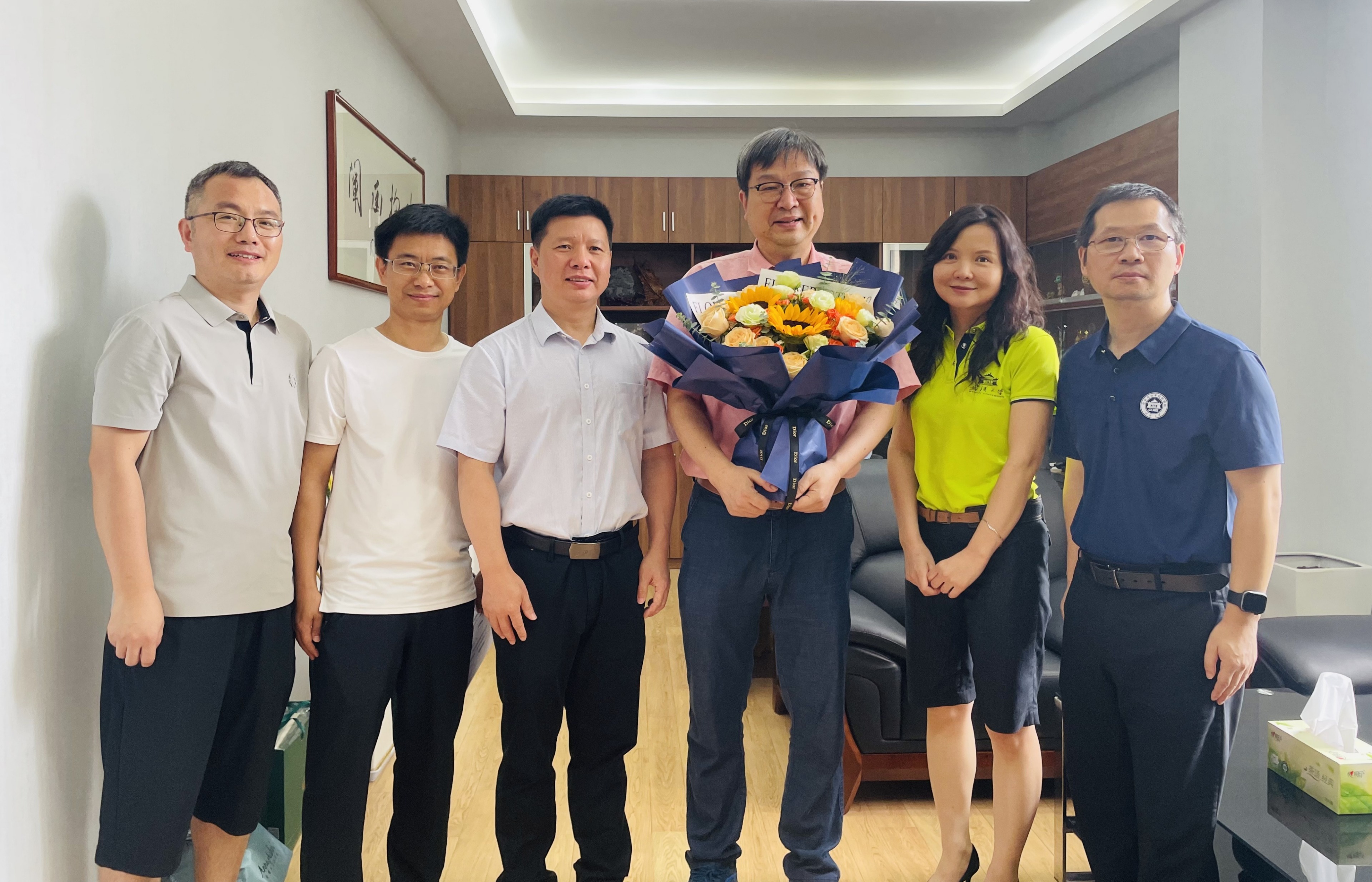 领导班子为周翔院士、王红教授、艾新平研究员、李峰副教授、丁琼老师、龚林波老师、邓鹤翔教授、李武教授、王功伟副教授、戚孝天教授等教师代表以及刘彦铄辅导员送上鲜花,与他们亲切交流,详细了解工作生活情况,并致以节日的诚挚问候与美好祝福。