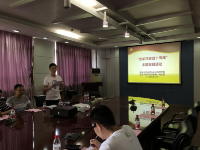活动第二项由组织委员樊锦轩结合PPT给大家做了“回顾改革开放”的主题讲解,包括改革开放的背景、改革开放的伟大历程、改革开放的措施与成就、改革开放中的武汉与91社区