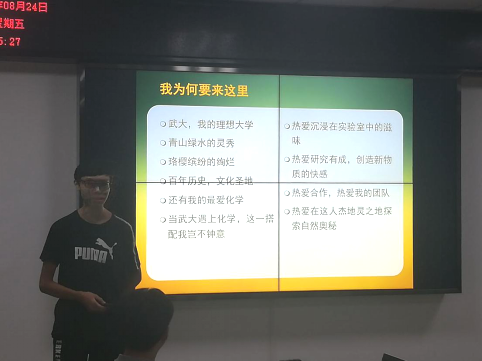 的部分特色活动,如“挑战杯”、“专家午餐会”、“实验室开放日”等。王老师最后还提到了日本的寿司之神小野二郎,她希望新生能够学习这种精益求精的工匠精神,在以后的人生道路上努力、奋进!