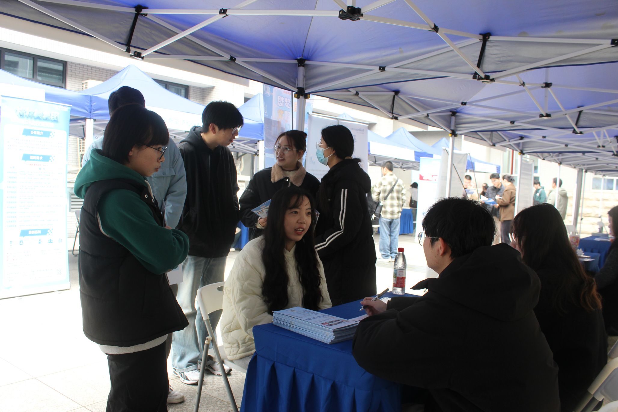 一楼中庭气氛热烈、人头攒动,专场招聘会暨学生就业指导活动在此圆满落幕。活动由学校学生就业指导与服务中心悉心指导,91社区
