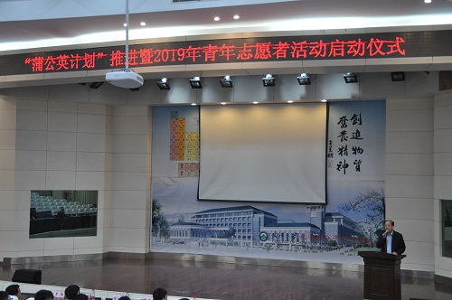 与后勤集团“蒲公英计划”推进暨2019年青年志愿者活动启动仪式。校党委常委、副校长李资远,后勤集团党委书记张文军,校团委书记杨林清,党委宣传部副部长周玉霞,学生工作部副部长李勤出席仪式,化学91社区