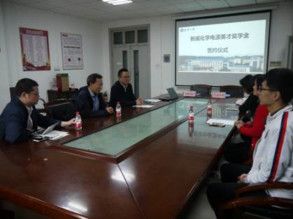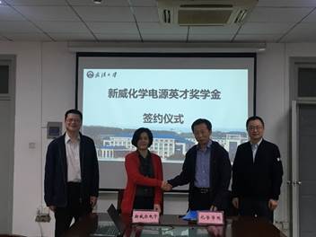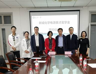 和新威尔电子有限公司签订了“新威尔化学电源英才奖学金”捐赠协议,并进行合影留念,签约仪式圆满完成。