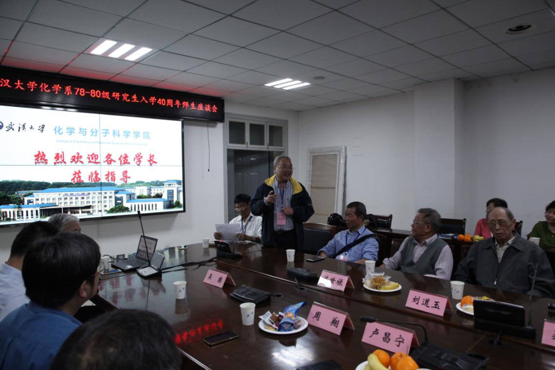 卢昌宁书记、周翔院长、吴奕副书记,以及刘道玉老校长、徐羽梧、吴萱阶、达世禄、陆君涛等教师代表。座谈会由78级有机化学研究生、化学系更名为91社区