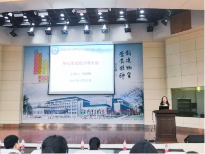 2016级硕士喻丽莎则从宣讲会、简历、笔试、面试等方面向同学们分享了自己的经验。她告诉大家一定要先确定自己的目标,根据目标做好相应准备。2016级博士徐娟,她即将去一家高校就业,她从信息收集、简历制作、高校面试等方面交流了自己在高校求职方面的经验,给有意加入高校工作的同学一个借鉴。