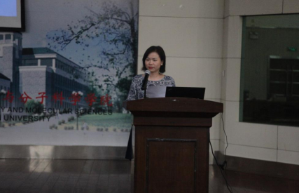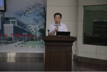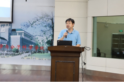 院长周翔教授致辞。周翔院长对整个夏令营活动进行了总结,强调了学习过程中创新的重要性,鼓励大家未来在硕士生阶段努力创新,争取学术与人生的突破。随后,有机化学研究所所长唐红定教授、无机化学研究所副所长邓鹤翔教授、高分子科学系主任周金平教授、物理化学研究所副所长蒋风雷教授、分析科学研究中心主任张志凌教授、应用化学系副所长李雪副教授分别向营员介绍了各个二级单位的学科特色、师资力量以及各个课题组的基本情况、研究方向等等信息。