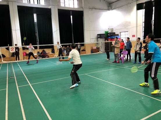 工会、研究生会共同举办,团体赛主要有混双、男双、女双三项,采用小组循环积分赛与淘汰赛相结合的赛制。比赛吸引了11组代表队共计100多名师生参加。比赛分为A、B两个小组,经过一上午的小组赛,每个小组决出2支队伍进入四强。经过激烈的半决赛和决赛,最终,胡继明教授、张勋高教授联队荣获冠军;周翔教授、周晓海教授联队获得亚军;张俐娜教授、雷爱文教授联队和黄卫华教授队并列获得季军。