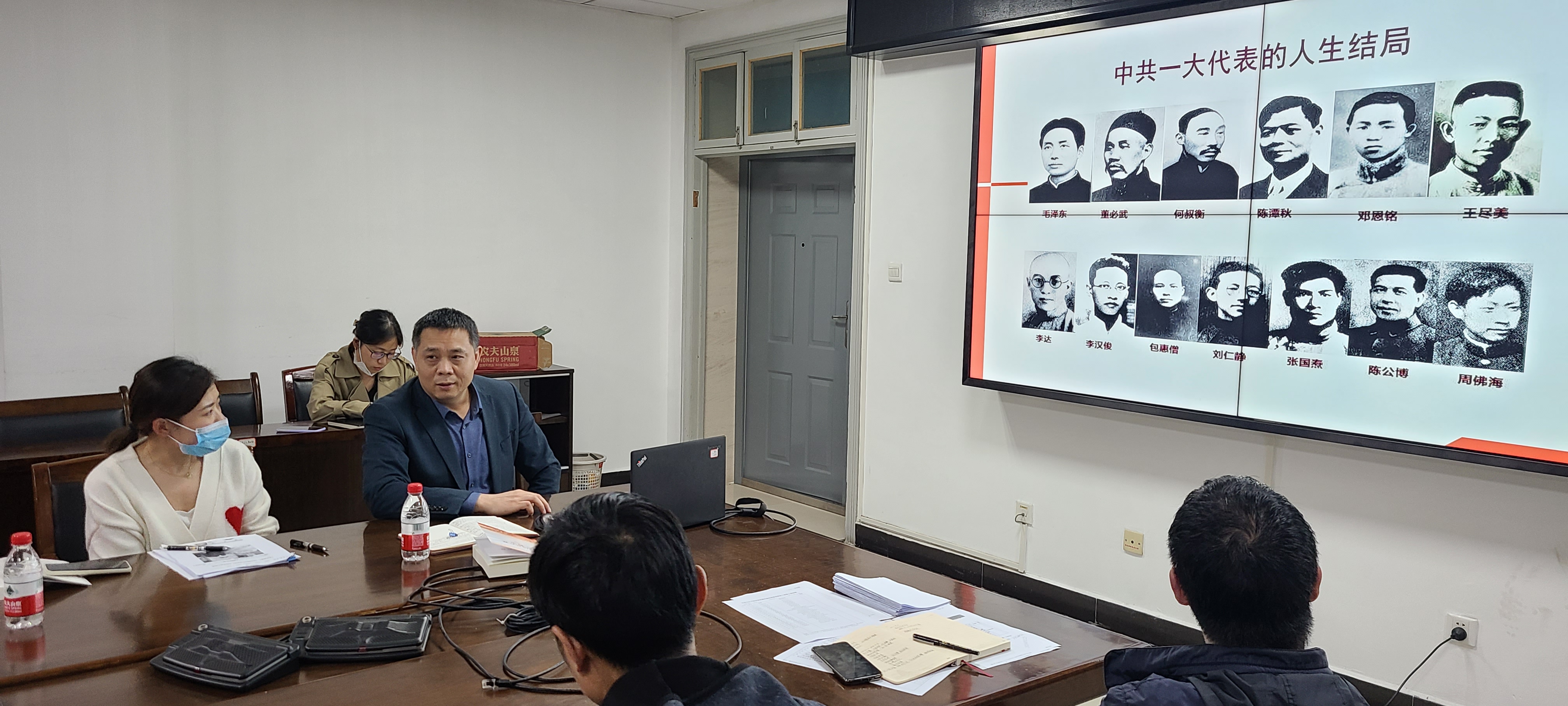 党委副书记王中全做主题为“中共一大代表的人生结局”宣讲,王中全副书记对参与中共一大的13名同志的不同人生际遇进行了详细的讲解。他要求机关支部全体党员不断增强党员意识和服务意识,在实际工作中高质量服务师生,践行初心和使命。