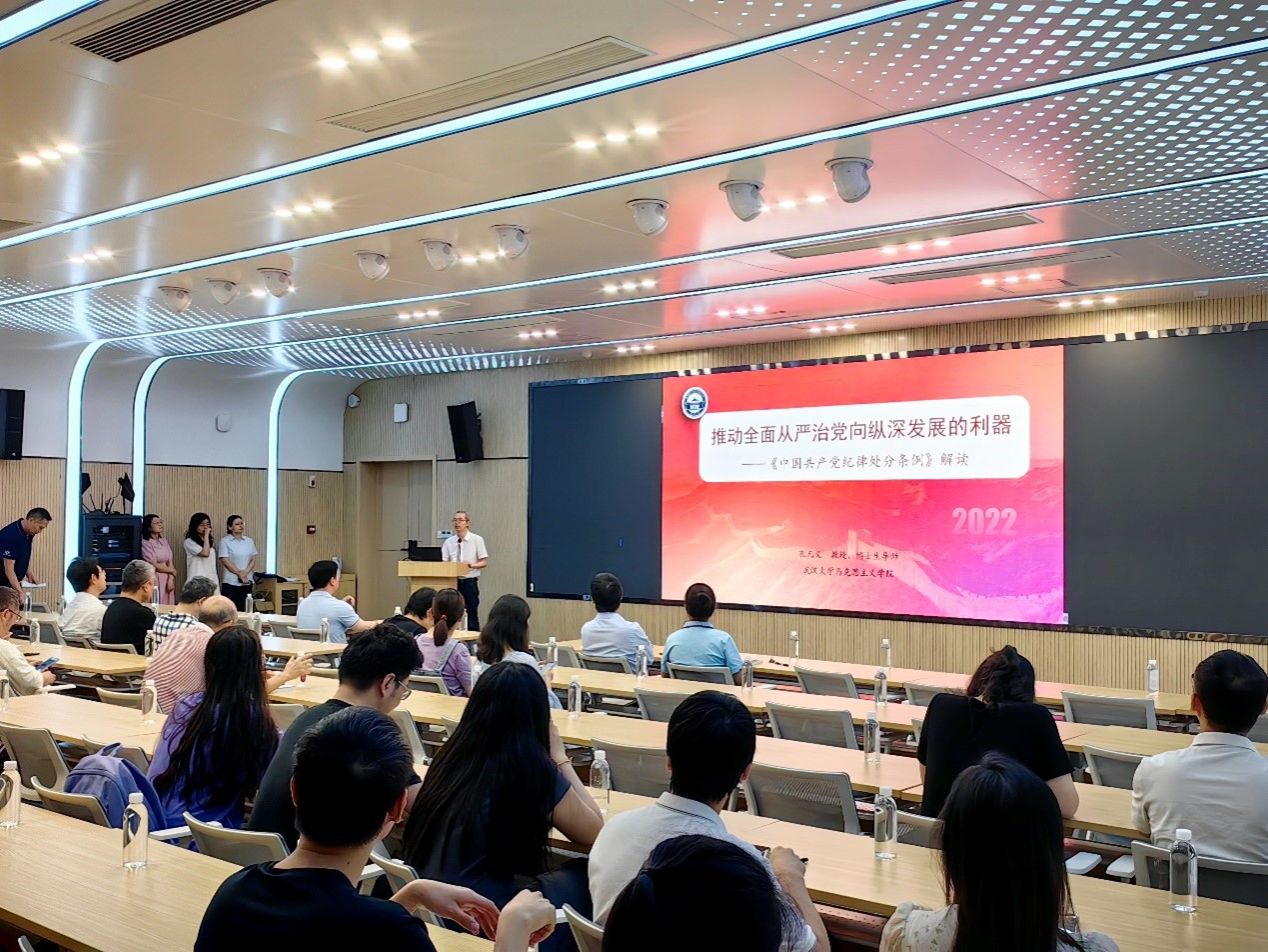 教授孔凡义应邀作题为“推动全面从严治党向纵深发展的利器——《中国共产党纪律处分条例》解读”的专题报告,从修订历史、修订原因、重要变化以及落实措施四个方面出发,结合案例对《中国共产党纪律处分条例》进行了生动详实的解读。他提到,全面从严治党强调“苍蝇老虎一起打”,《中国共产党纪律处分条例》历经三次修改,对人民群众身边的贪污腐败行为打击力度不断增加。他强调,作为规范党组织和党员行为的基础性规定,《中国共产党纪律处分条例》是全党在政治上同党中央保持高度一致的重要保证,根据形势的发展对其进行修订,是确保各级党组织和全体党员深刻领悟“两个确立”的决定性意义、切实做到“两个维护”的必然要求。
