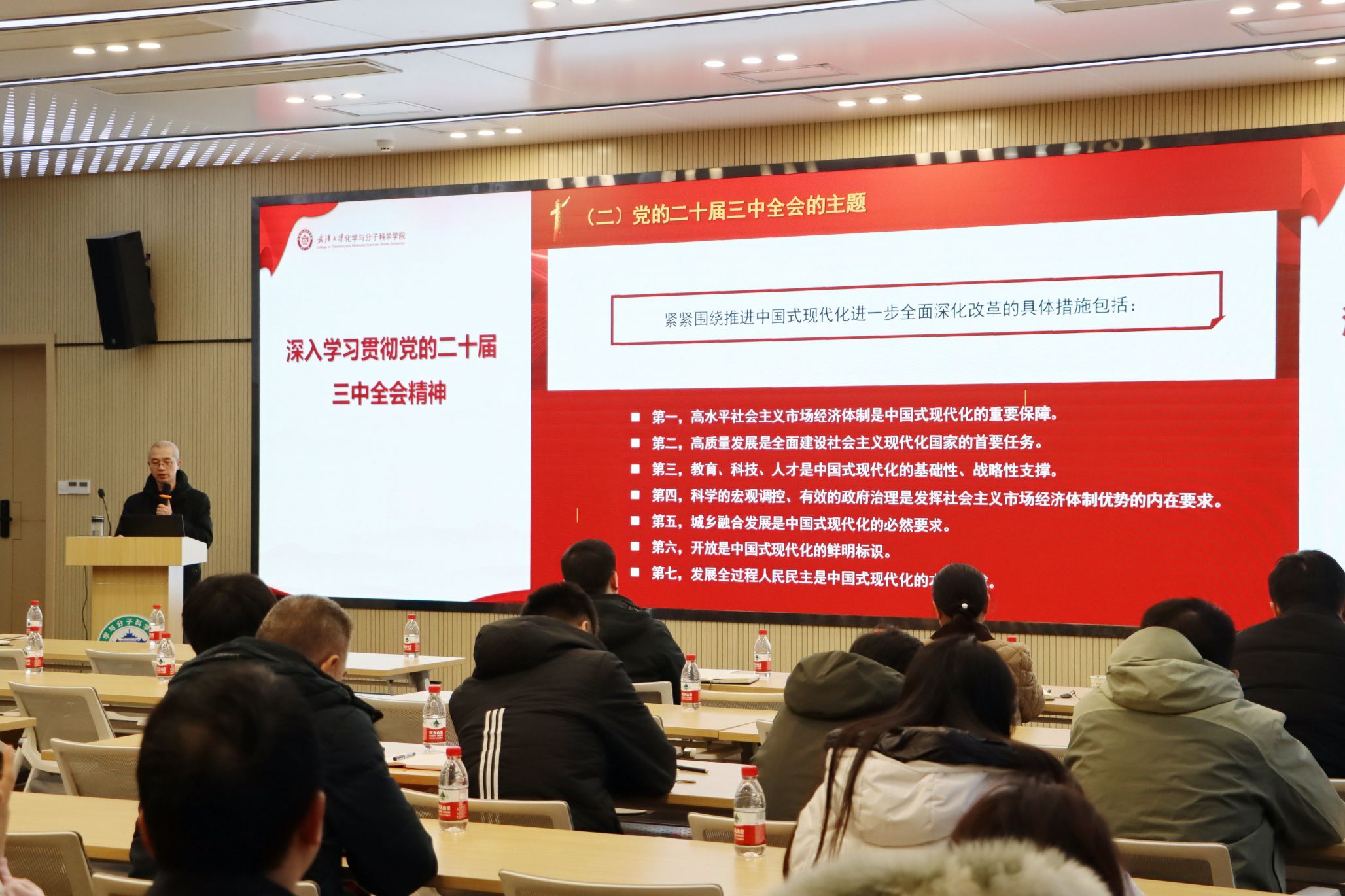 于曾昭抡学术报告厅开展深入学习贯彻党的二十届三中全会精神专题辅导报告会,旨在将全会精神融入教育教学实践,推动91社区