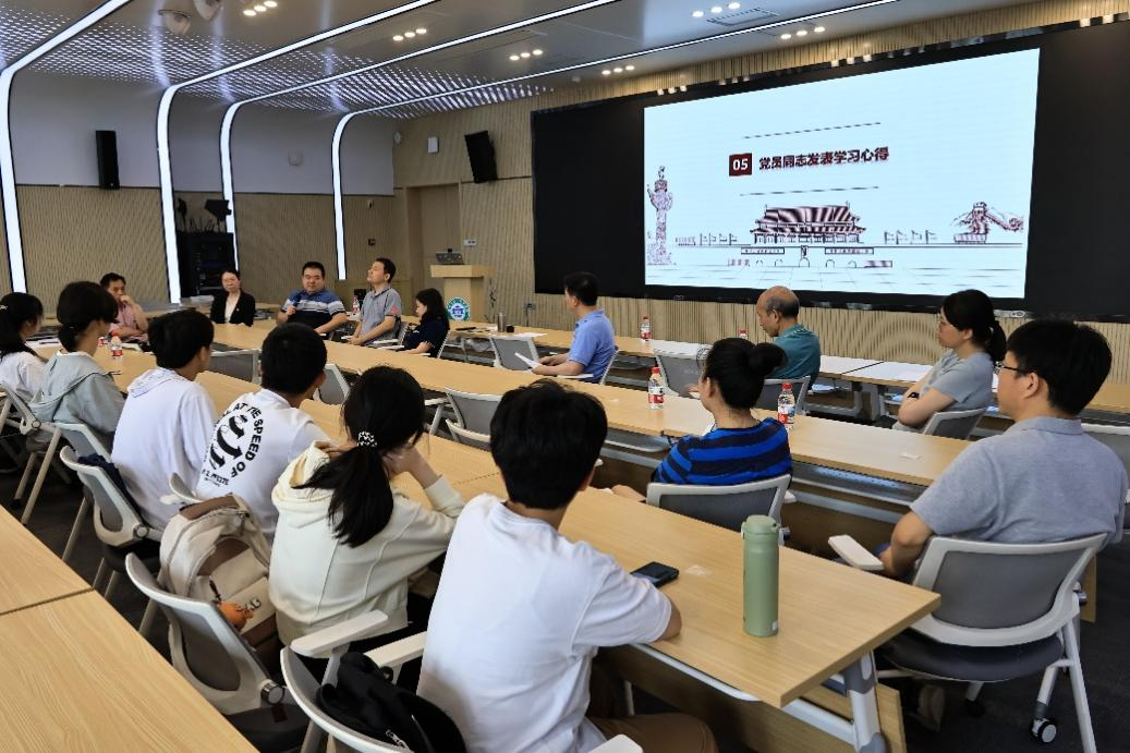 在随后的交流环节中,师生们纷纷发表学习心得,结合自身实际谈认识、谈体会。林毅老师结合近期伊朗与以色列冲突事件,指出当前国际形势复杂多变,我们要珍视来之不易的幸福生活,为党和国家贡献自己的力量。魏振威老师回顾自己的入党经历,强调要将个人发展融入国家需求,广泛学习知识,提升综合素质。唐宏武老师则从自身求学经历出发,鼓励学生立大志、报效祖国。向立民老师提出,应将“十四五”、“十五五”规划与个人学业、科研规划相结合,科学规划人生。袁荃老师结合自身留学经历,强调国家命运与个人命运紧密相连,青年学生应积极投身祖国建设。郭存兰老师则从以色列留学经历出发,提出落后就要挨打,应加强我国实力,为实现中华民族伟大复兴贡献力量。