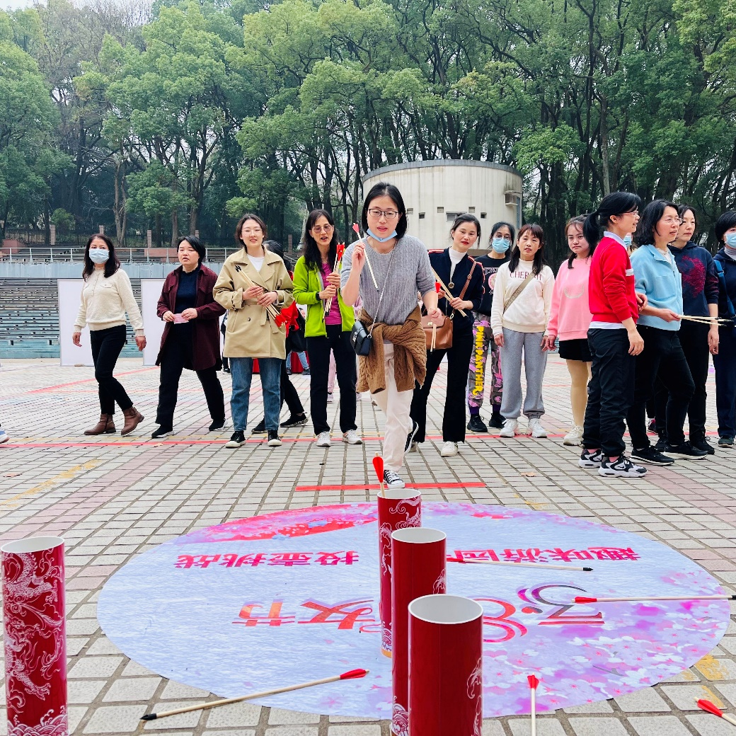 代表队参赛。她们通力合作,高质量完成了二十大之飞花令、活力二十大·齐心踢毽子、武大一日游·巨型大富翁、二十大之学·武大我践行、投壶挑战、椪糖挑战等六个项目的挑战,勇夺校工会“三八”趣味游园活动一等奖。