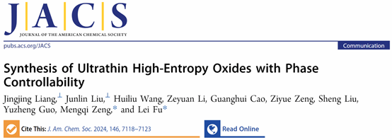 付磊教授团队的最新研究成果,“Synthesis of Ultrathin High-Entropy Oxides with Phase Controllability”(《超薄高熵氧化物的相可控合成》)。91社区