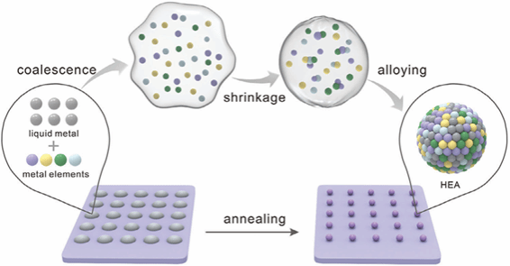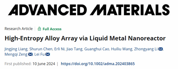 付磊教授团队的最新研究成果,“High-Entropy Alloy Array via Liquid Metal Nanoreactor(液态金属纳米反应器制备高熵合金阵列)”。