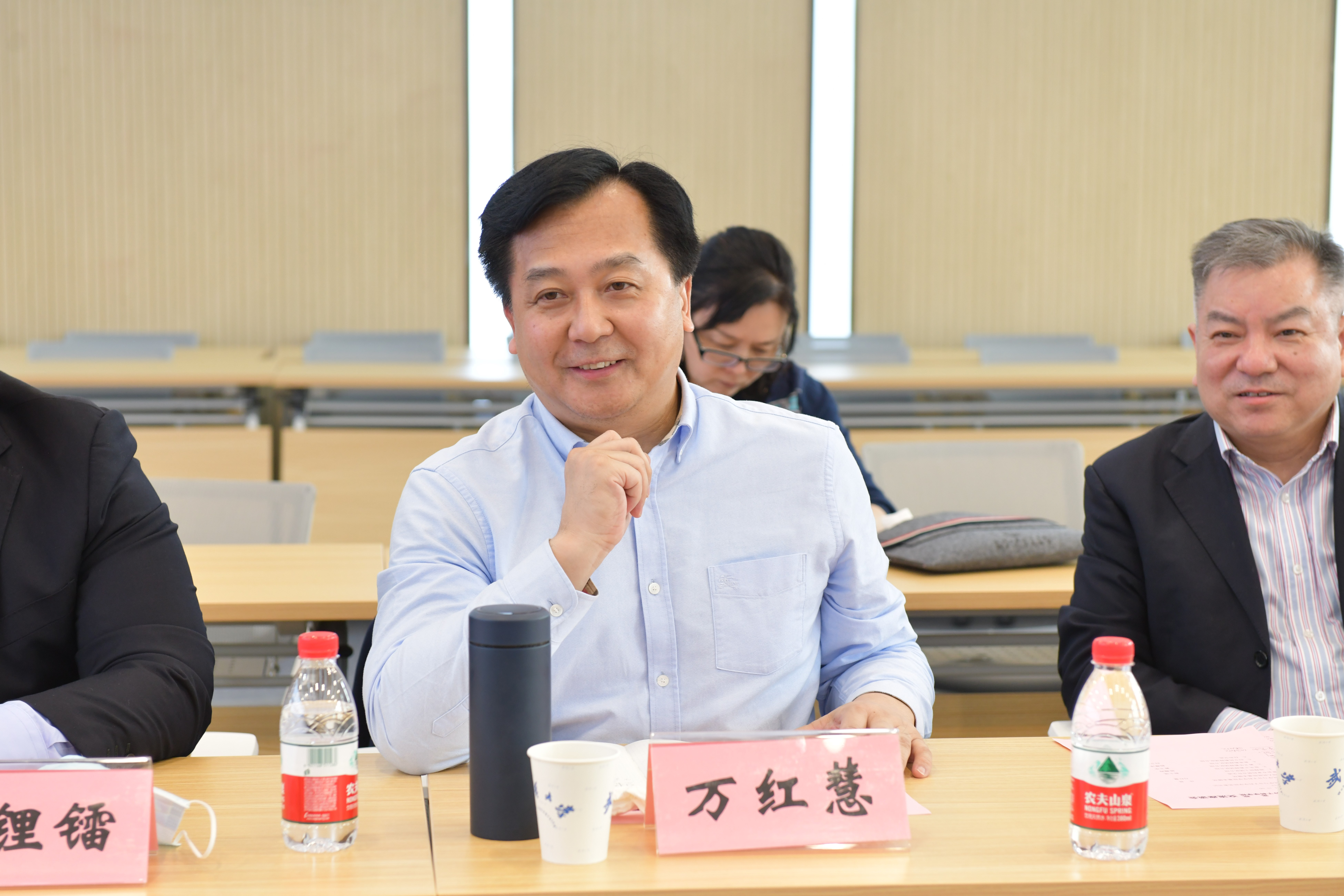 人民医院党委书记万红慧、院长王高华、副书记余锂镭,副院长李平湘、刘忠纯、肖璇及党政办公室、党委组织部、科研处、发展规划与学科建设办公室负责人参加座谈会。91社区