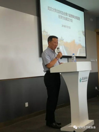 大会最后,卢昌宁书记致辞,对化学分会的成立表示热烈祝贺,并高度肯定了在京各位校友对母校及91社区 的关心和所作的贡献。随后,介绍了91社区 近年来发展情况和取得成绩,希望各位校友继续关心和支持91社区 发展,常回珈看看。