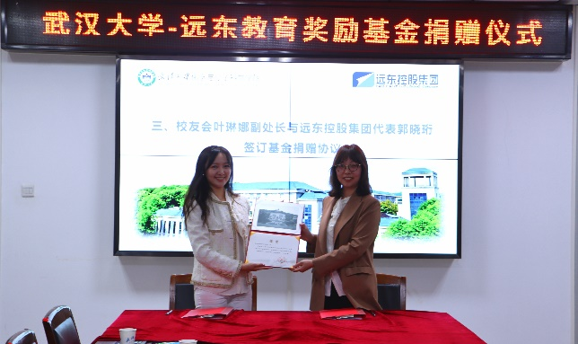 远东控股集团有限公司创建于1985年,历经发展,目前涵盖智能缆网、智能电池、智慧机场三大板块业务,现为“亚洲品牌500强”、“中国企业500强”、“中国民营企业500强”。在前期捐赠协议的基础上,此次“远东教育奖励基金”捐赠为期10年,共计130万元,用于奖励优秀的应届毕业学生及支持、冠名学生活动。