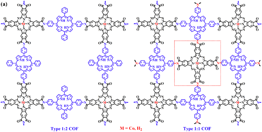 在这些研究的基础上,该课题组进一步将卟啉和酞菁通过亚胺化反应偶联形成共价有机框架材料,并将其用于电催化CO2还原领域。结果表明,它的催化活性优于CoPc单体,这归因于共价有机框架材料能够暴露出更多的活性位点以及钴中心的富电子环境。除此之外,该项工作通过改变卟啉的结构进而改变框架材料的孔结构,结果表明孔径更大的框架材料具有更好的CO2还原本征活性,这可能与它更容易吸附CO2有关。通过理论计算也进一步验证了,孔径更大对CO2的吸附和活化更有利。这项工作为基于卟啉、酞菁聚合物的CO2还原光/电催化剂的结构设计提供了一种新的思路,揭示了电催化剂的孔结构在CO2还原反应中的重要作用。