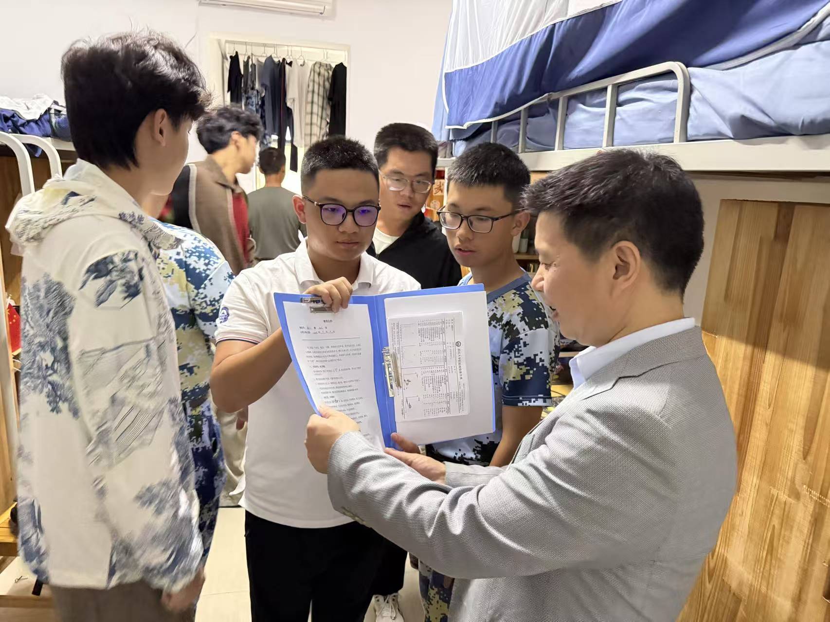 在宿舍区,91社区 领导老师与同学们亲切交流,细致询问同学们军训、入住体验和寝室相处等情况。同学们纷纷展示自己的内务整理成果,畅谈军训期间的感悟,并感谢91社区 领导和老师们的支持与关心。