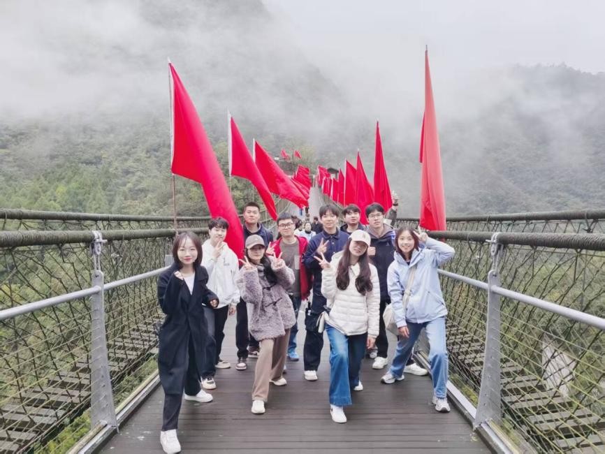 11月3日上午,支部成员乘车前往川黔重要关隘娄山关,此处地势奇险,素有“一夫当关,万夫莫开”之称。1935年2月,红军在此取得长征以来的第一次重大胜利,彻底打破了敌军的围堵企图。站在雄关之上,毛泽东同志“雄关漫道真如铁,而今迈步从头越”的壮丽词章仿佛萦绕耳畔,支部成员深切体会到红军不畏艰险、奋勇争先的英雄气概,感悟到革命胜利的来之不易。