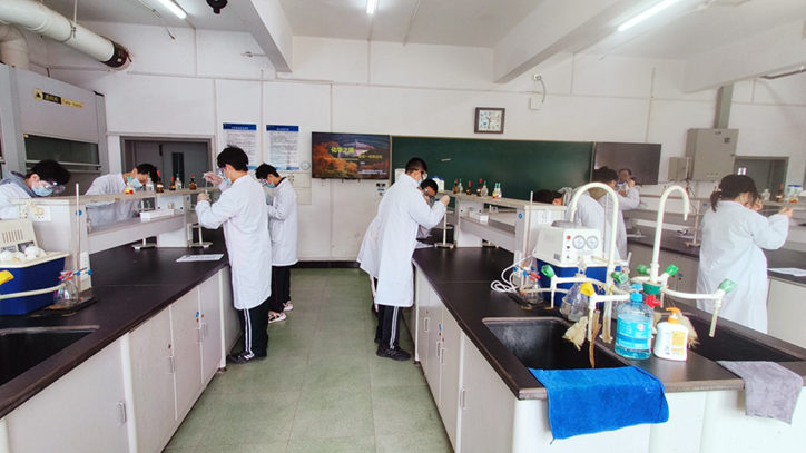 随后,在刘欲文老师的指导下,同学们穿上实验服进入实验室,自己动手参加了黄金雨实验。实验中,同学们全神贯注,认真细致,在梦幻的黄金雨中感受化学的美妙。化学的魅力不仅在于实验,也在于实验背后的原理,通过刘欲文老师的讲解,同学们学习了实验背后蕴含的化学知识,提高了对化学的兴趣。